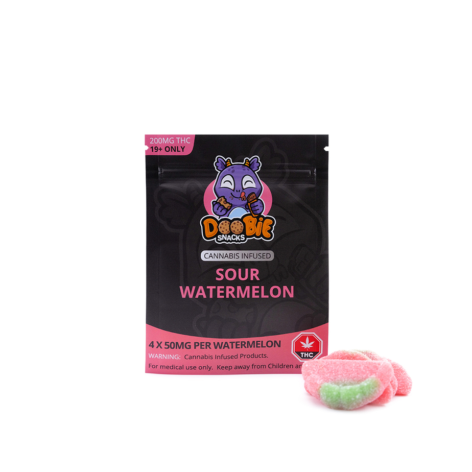 Even though smoking is the preferred method of cannabis consumption for most users, we all know that it can be extremely difficult to resist a couple delicious edibles! Doobie Snacks signature line of infused gummies are a multi-purpose edible ideal for both medicinal and recreational users! They’re made with real fruit juice for the best taste, and cannabis infused coconut oil for maximum cannabinoid absorption and bioavailability – this means you can say bye to inaccurate dosages and edibles and hello to pure goodness! Each package of Doobie Snacks Sour Watermelons are infused with 200mg of THC (50mg/piece) making them easy to dose for beginners and strong enough for more seasoned users and come in a variety of flavours such as Blue Raspberries and Sour Watermelons to suit your specific needs!