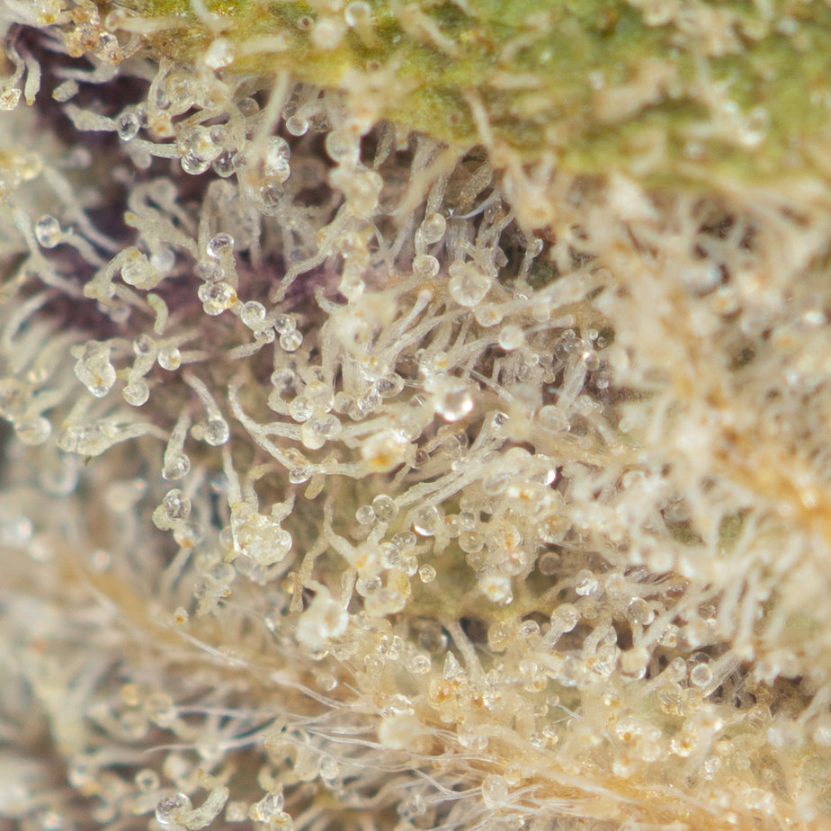 Georgia Pie buds are small in size with a rounded though lumpy shape, similar to popcorn! They are densely packed as well. They are primarily an olive green shade with thin deep orange, almost brassy pistils. There are sometimes lavender purple colouring throughout as well, but always finished with a frosty layer of crystal trichomes! It is richly sweet and fruity with notable tones of berries, cherries and warm nutty dough. Other notes include a gassy diesel, earthiness and herbs that is typical of most cannabis, and there are also hints of floral. A toke of this strain offers a delicious combination of these aromatic flavours, ultimately coming together to give you a decadent taste of peach cobbler, otherwise known as Georgia Pie!
