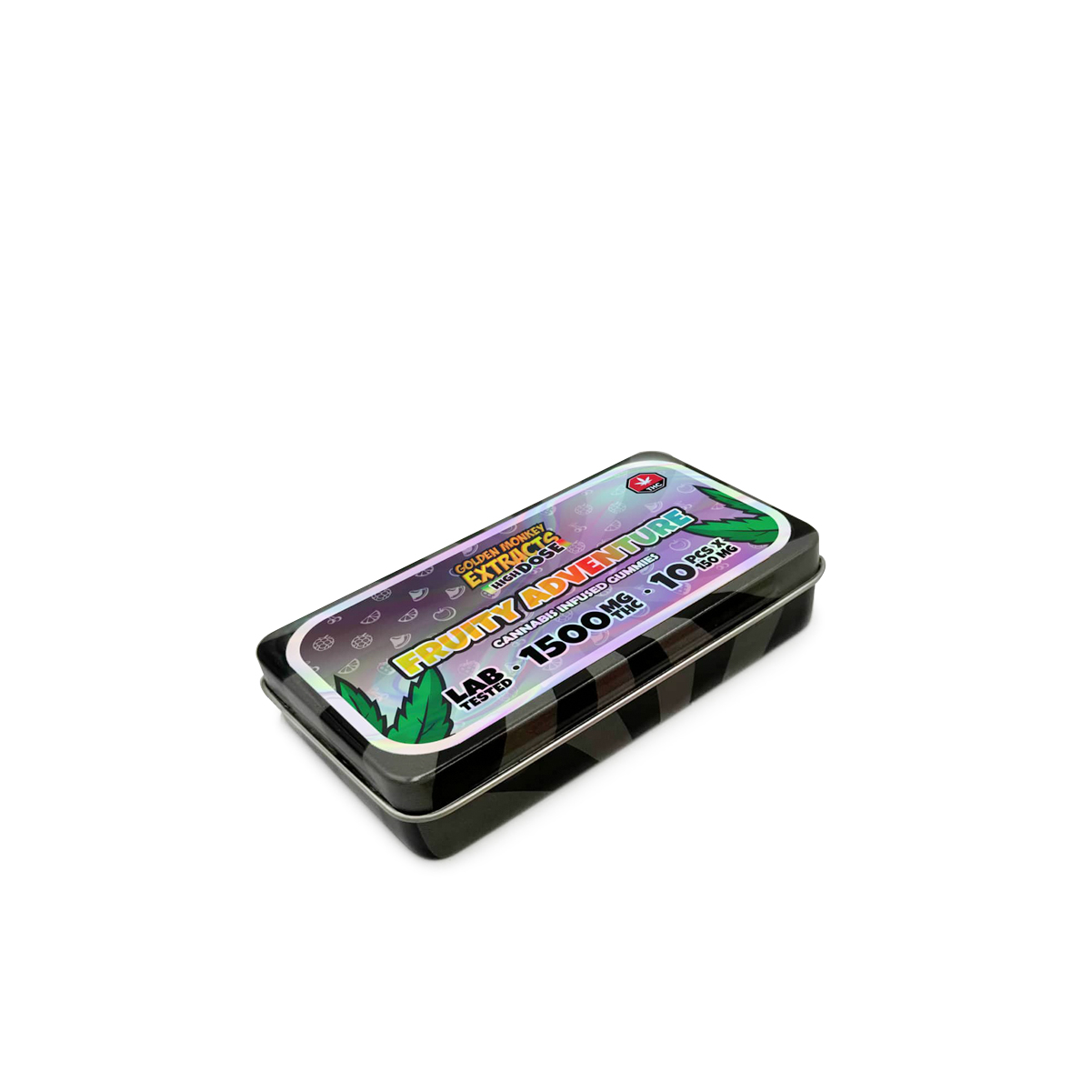 Golden Monkey Extracts Fruity Adventure Gummies offer a bold and flavorful experience, with each tin containing 10 delicious, fruit-flavored gummies infused with 150mg of THC each, totaling 1500mg. Perfect for seasoned users, these gummies deliver potent, consistent effects that are sure to enhance your next adventure.
