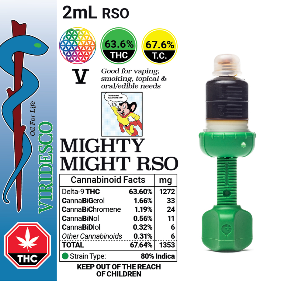 Viridesco Mighty Might V-RSO is a potent cannabis concentrated that is formulated from cannabinoids that are extracted from strain specific flowers. Phoenix Tears, or Rick Simpson Oil (RSO) are popular among those who require the medicinal benefits of cannabis but want to avoid the negative side-effects or harshness of smoking weed. Viridesco believes that cannabis is a life enhancer and they strive to provide Canadians with unadultered, medicinal-grade hemp and cannabis derived extracts. Their Mighty Might V-RSO is extracted from strain-specific flowers grown in beautiful British Columbia and extracted using pure solvents and purged before being packaged in a revolutionary Patron Eos-Dispenser – the world’s first dispenser patented to contain and accurately dispense resinous cannabis oil down to 0.01mL.